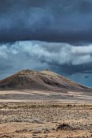 Wolkenlucht boven het binnenland van het Canarische eiland Fuerteventura boven het dorre vulkanische landschap