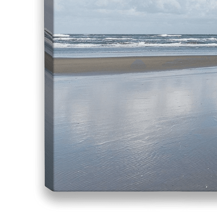Op het Noordzeestrand van Terschelling worden de wolken pracht gereflecteerd en het water wat tijdens het getij is ontstaand.