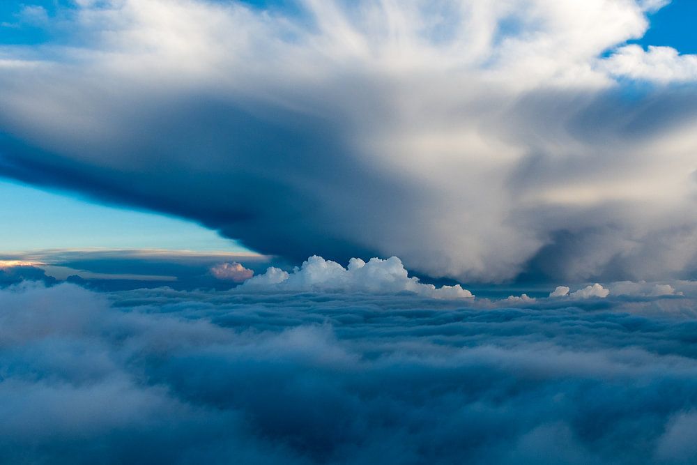 Groothoekbeeld van een grote donderwolk vanuit de lucht, Beieren, Duitsland