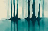 In zachte, mysterieuze kleurschakeringen nestelt zich een betoverd bos tegen een rustig beekje waarin de silhouetten van de bomen op fascinerende wijze worden weerspiegeld. Deze sfeer van rust en mijmering brengt rust in elke woonkamer en nodigt uit om te blijven hangen. Ideaal voor natuurliefhebbers en creatieve zielen!