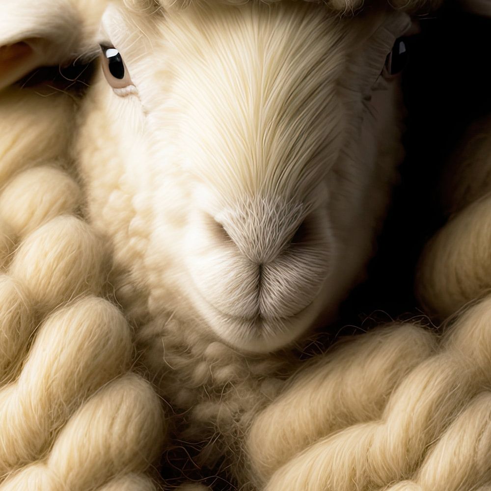 Een grappig dieren portret van een schaap gehuld in een dikke laag wol. Schattige dierenprint van dit Hollandse boerderijdier dat gehouden wordt voor de melk en voor de wol. Een prachtige dierenprint die verbindt met het platteland, even weg van de stadse hectiek.