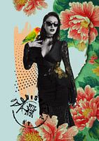 Woman in wallpaper forest is een opvallende muurdecoratie die direct de aandacht trekt en blijft verrassen. In dit kunstwerk komt een krachtige vrouwelijke figuur samen met een gelaagde collage van oud behang, rijke bloemenpatronen en speelse grafische elementen. De basis wordt gevormd door een stijlvolle zwart-wit foto, die een sterk…