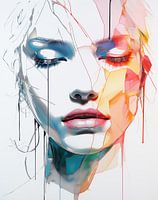 Portret van een mooie vrouw gemaakt van dunne lijnen en vlakken. Prachtig op elkaar afgestemd subtiel kleurgebruik. Passend bij diverse stijlen en trends. Modern abstract