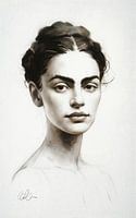 Een prachtig en sereen portret van een vrouw, in zwart wit met een vleug sepia.