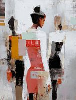 Dit moderne kunstwerk straalt kracht en elegantie uit. De abstracte weergave van drie vrouwelijke figuren, opgebouwd uit dynamische vlakken en krachtige penseelstreken, geeft het doek een tijdloze en expressieve uitstraling. De mix van warme en koele tinten – van diep oranje en rood tot subtiel wit en zwart – zorgt voor een spannende balans tussen energie en sereniteit.