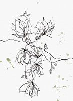 Digitale lijntegening met aquarel accenten van geabstraheerde, hangende bloemen.