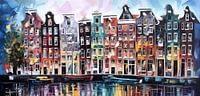 Schilderij Wonen in Amsterdam - Er zijn veel verschillende schilderijen die je kunt kopen voor je woning in Amsterdam. Er zijn kunstwerken van bekende Nederlandse kunstenaars zoals Piet Mondriaan, Jan Toorop, Charley Toorop, en Jan Sluijters. Er zijn ook veel moderne kunstwerken te koop, zoals abstracte schilderijen, fotografie, en andere kunstvormen. Er zijn ook veel vintage posters, tekeningen en schilderijen te vinden in Amsterdamse galeries en op markten. Maar dit moderne schilderij toont mooie grachtenpanden in Amsterdam.