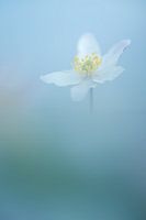 Macro opname van een bosanemoon met fijne koele pasteltinten die het zachte lieflijke van de bloem benadrukken.