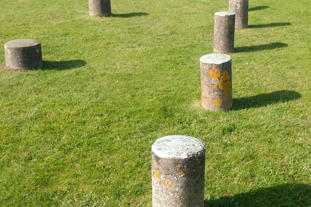 Amesbury Wiltshire England UK Woodhenge. Concrete markers showing where the wooden pillars would have stood. Carbon dating of artifacts show the site was in use around 1800BC