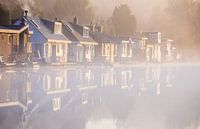 Woonboten bij Almere op een mistige ochtend