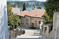 Woonhuizen in de romantische oude stad Rovinj aan de kust van de Adriatische Zee in Kroatië. Het oude centrum van Rovinj is populair bij toeristen uit de hele wereld vanwege de eeuwenoude gebouwen en smalle straatjes.