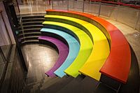 Regenboog bankjes in Woonmall Alexandrium in Rotterdam.