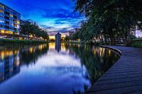 Woonwijk en water met de toren het potlood in Apeldoorn