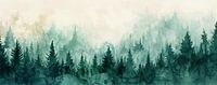 De voorgrond toont duidelijk gedefinieerde, donkere dennenbomen, terwijl de bomen verder naar achteren vervagen in een waas van mist. De subtiele overgang van diepe groentinten naar…