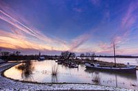 De oude haven van Woudrichem in Noord-Brabant. Een mooi oud, historisch tafereel. Zeker met deze winters sferen. Een aantal oude schepen, sneeuw op het landschap. Een heerlijk Hollands gezicht.
