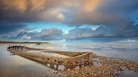 Gestrande Praam (wrak) nabij Wierum Friesland op het Wad tijdens zonsopkomst.