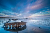 Koop dit landschapskunstwerk Wrak van een praam op het Wad bij Wierum van Hillebrand Breuker op canvas, aluminium dibond, (ingelijste) fotoprint, behang en ArtFrame, op maat geprint in Fine-Art kwaliteit.