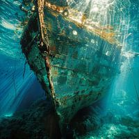 "Secrets of the Deep" onthult een fascinerend onderwaterpanorama met een majestueus gezonken schip ingebed in kristalhelder, turquoise gekleurd water. De zonnestralen die door het water breken verlichten het wrak en het omringende koraallandschap, waardoor een adembenemend tafereel van leven en verval ontstaat. Dit kunstwerk is een perfecte mix van natuur en geschiedenis en spreekt duikers, zeeliefhebbers en fans van maritieme archeologie aan. Het brengt de schoonheid van de zee en de stille pracht van gezonken scheepswrakken over.