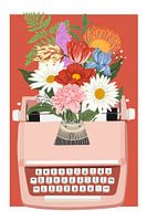 Een typmachine uit vroegere tijden, die een boeket van zomerbloemen schrijft.
