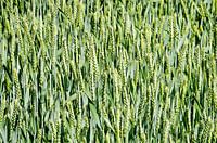 Close-up van een veld met tarwe aan het begin van de zomer.