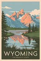 Majestueuze bergen weerspiegeld in een rustig meer, omlijst door weelderig groen - dit kunstwerk straalt de natuurlijke schoonheid van Wyoming uit. Het warme kleurenpalet en de nostalgische stijl nodigen uit tot dromen en creëren een uitnodigende sfeer. Ideaal voor in de woonkamer, waar het gesprekken stimuleert en herinneringen oproept.