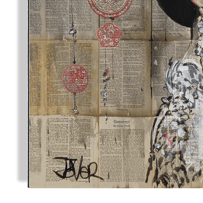 dit werk maakt deel uit van de reeks Asia-werken die in de afgelopen tien jaar zijn gemaakt in inkt en gouache met collage-elementen op oude boekbladen.