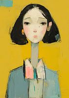 Details: vrouw, portret, geel, expressief, abstract, kunst, schilderij, gezicht, ogen, mode
