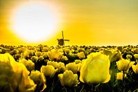 Een geel Tulpenveld bij zonsopkomst in Schermerhorn. Dit is Poldermolen G