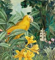 Het tropische landschap op de achtergrond is een collage van details uit schilderijen van de Franse postimpressonistische kunstschilder Henri Julien Félix Rousseau (1844-1910).