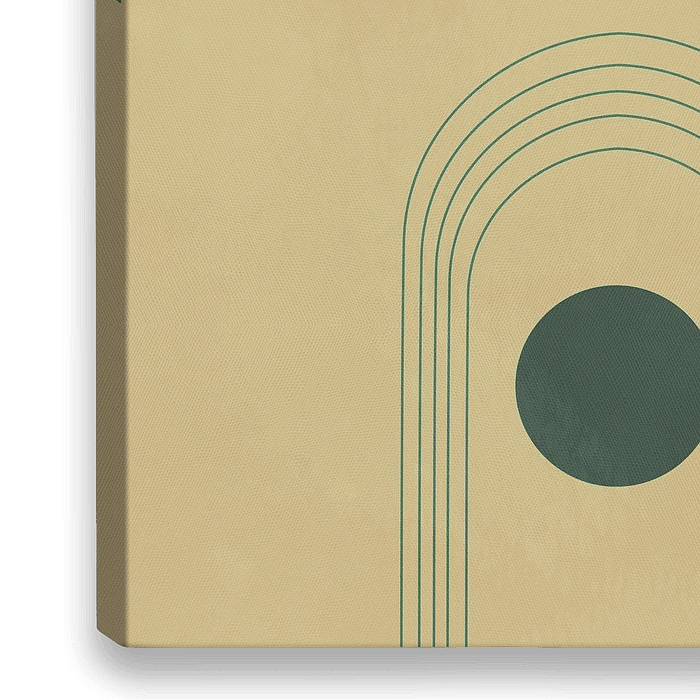 Abstract minimalistisch design in geel en groen tinten. Met ronde,halve cirkels en lijnen perfect in balans. Trendy en tijdloos. Met reliëf in de achtergond verwerkt. Toen ik het design voor me zag staan, deed het me denken aan Yellow stone park, met zijn hoge bomen en gele kleuren.