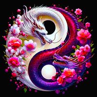 Yin-Yang draak met kersenbloesems - gekleurde illustratie van A.D. Digital ART