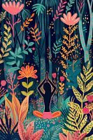 "Yoga in het Bloemenbos" is een levendige voorstelling van een vredige yoga-sessie omgeven door de weelderige flora van een betoverend bos. Het silhouet van de yogi in een pose van rust en concentratie contrasteert mooi met de kleurrijke, bloeiende achtergrond. Dit stuk symboliseert groei en de bloei van het innerlijke zelf, net zoals de natuur steeds verandert en zich ontwikkelt.