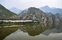 Reflectie van het gebergte in de Yongding-rivier ten noorden van de Chinese hoofdstad Peking.