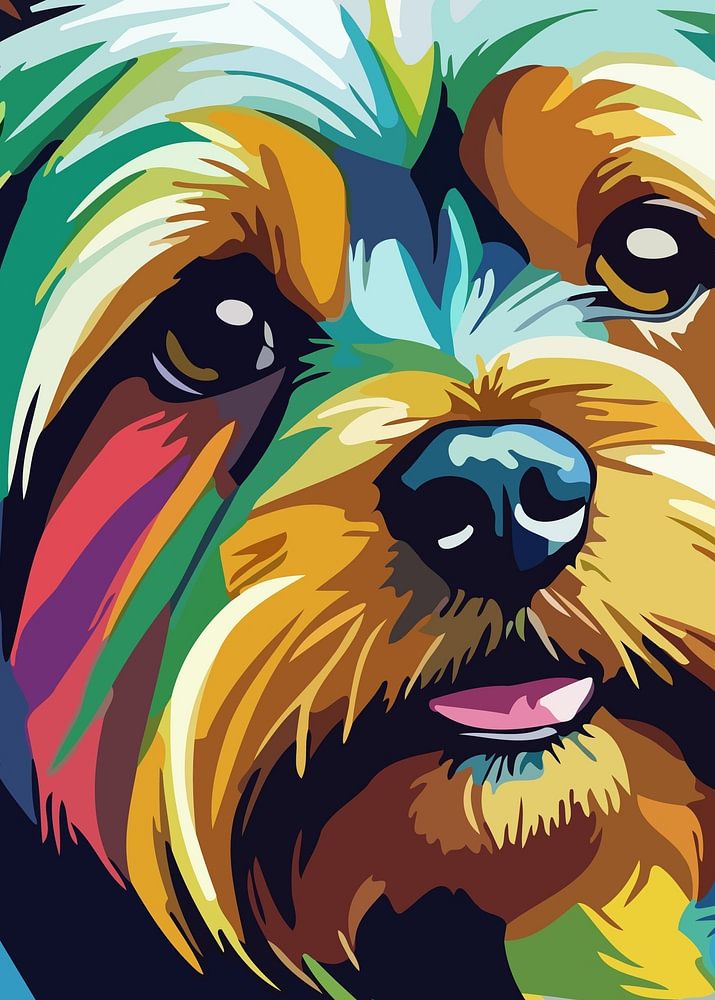 Deze pop-art weergave van een Yorkshire Terrier zit vol vrolijke chaos en kleurrijke genegenheid. Gedrenkt in neonkleuren van groenblauw, mandarijn en kauwgumroze, straalt de speelse aard van de puppy van het doek. Zijn vacht is gestileerd met energieke, wervelende patronen, terwijl zijn kleine gezicht straalt van ondeugendheid en warmte. De compositie knalt met moderne flair, waardoor dit schattige ras verandert in een dynamisch, expressief modern kunstwerk.