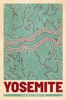 De Yosemite Valley in de VS als topografische kaart. Retrostijlkaart met hoogtelijnen. Stijlvolle print voor wandelaars, bergbeklimmers en outdoorfans - ook als cadeau-idee!