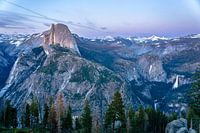 Wanneer de laatste zonnestralen op de granieten steen van Half Dome in Yosemite Valley schijnen, is het een uniek schouwspel om deze alpengloed te zien.