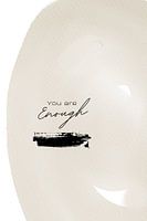 Digital art met de titel: "You are enough". Aardentinten, zwart lettertype en zwarte streep.