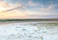 Strand met zeekraal en riet tegen lucht met pasteltinten