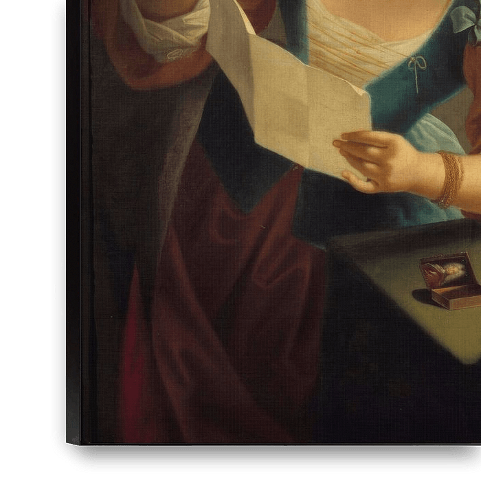 Koop Young woman reading a letter als reproductie op canvas, aluminium dibond, (ingelijste) fotoprint, behang en ArtFrame, op maat geprint in Fine-Art kwaliteit.