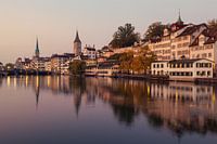 De rivier de Limmat in Zürich (Zürich) bij dageraad, Zwitserland