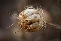 Zaaddoos van een uitgebloeide Juffertje in het Groen plant.