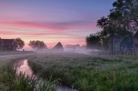 Zaanse Schans bij zonsopkomst met wat grondmist