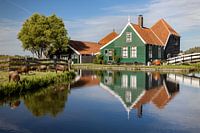 Een aanzicht op de kaasboerderij van de Zaanse Schans. De schapen op de voorgrond zijn een leuk detail, die je niet vaak ziet van deze locatie. De frisse groene kleuren geven dit beeld levendige uitstraling!!