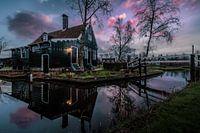 Karakteristiek hollands huisje op de Zaanse Schans bij Zonsopkomst.