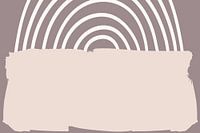 Een abstract Scandinavisch landschapschilderij met regenboog en geometrische vormen in roze mauve zomerkleuren.