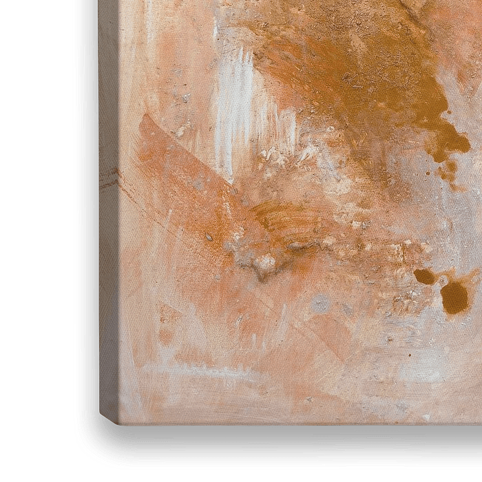 Dit abstracte schilderij in warme en zachte aardetinten straalt een serene, dromerige energie uit. Het werk is opgebouwd uit lagen acrylverf en klei-structuurverf, wat zorgt voor een voelbare textuur, afgemaakt met subtiele houtskoolaccenten.