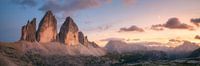 Zacht avondlicht bij de Three Peaks.