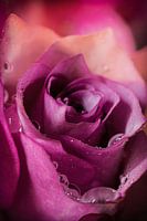 Deze foto is een macrofoto die ik heb gemaakt van een roos met regendruppels er op.