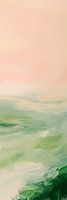 Zachte heuvels in verschillende groentinten lijken verloren te gaan in een glinsterend landschap, terwijl een delicate perzikkleurige lucht erboven zweeft. Deze harmonieuze kleurencompositie brengt een gevoel van rust en eindeloze uitgestrektheid over, alsof de natuur een poëtisch geheim fluistert dat alleen oplettende kijkers kunnen…
