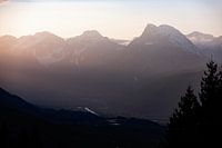 Zacht warm licht en bergtoppen bij het Oostenrijkse Seefeld. Dit is de hohe munde, een mooie berg in de buurt van Innsbruck